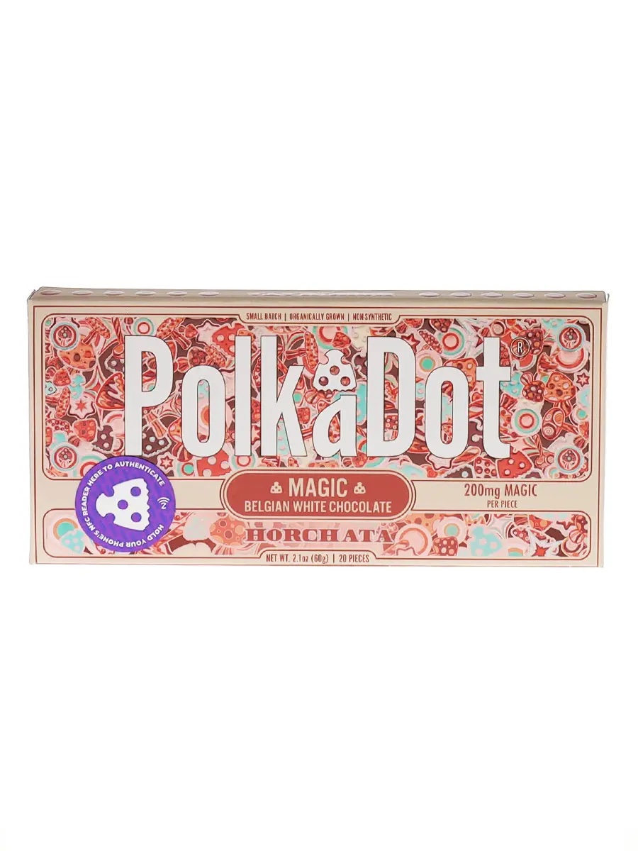 Savor the Horchata PolkaDot Magic Mushroom Belgian White Chocolate, a luxurious blend of smooth Belgian white chocolate and the warm, spiced flavors of classic horchata. Infused with 200mg of magic mushrooms per piece, this delectable treat delivers a comforting yet enchanting experience with every bite. Perfectly balancing creamy sweetness and rich cinnamon notes, it offers a magical experience to uplift your senses and indulge your taste buds in pure delight.
